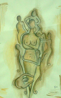 "Hin und her gezerrt"; 50 x 70 cm; Mischtechnik
